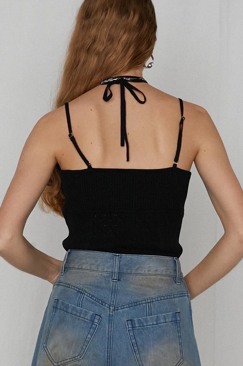 ホルターのストラップは首に巻きつけてチョーカーのようにもアレンジ可能。