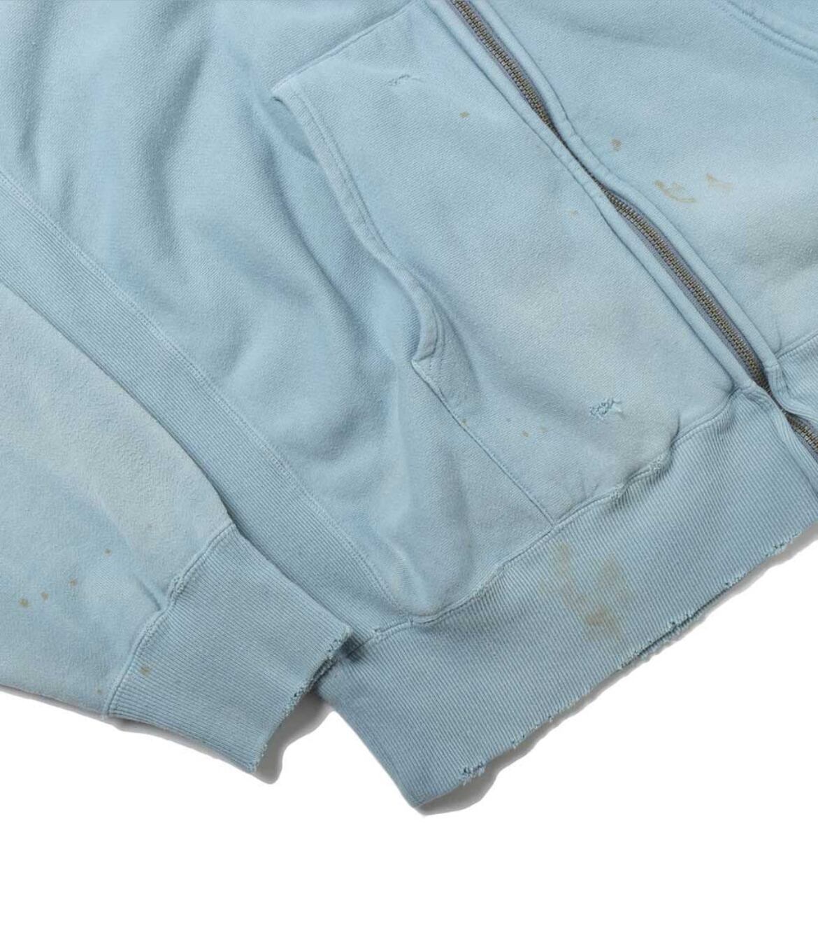 度詰のヘビースウェット生地に長年着用したかのような風合いとダメージ加工が特徴の商品。