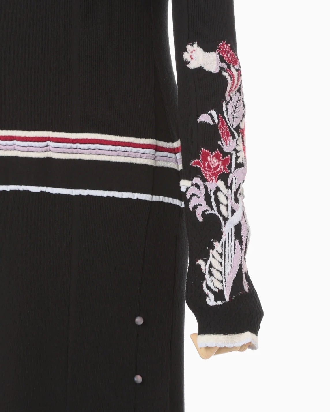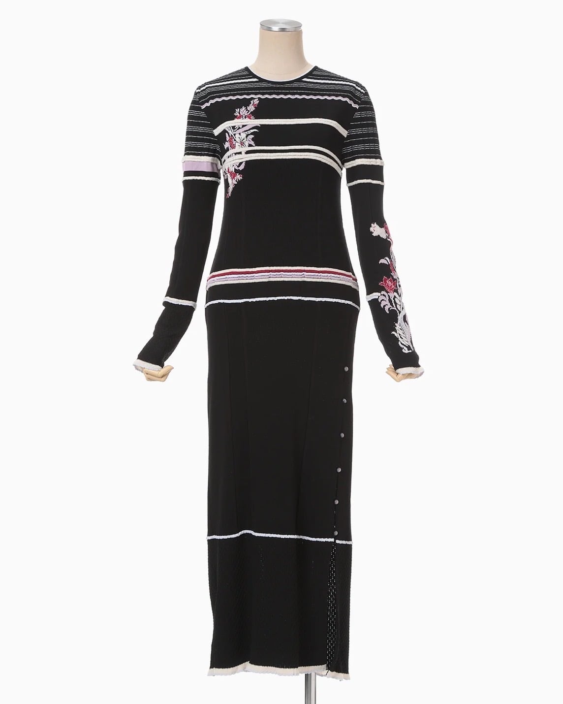 花柄モチーフが浮かび上がる、ピンタック仕立てのすっきりとしたシルエットのニットドレス。