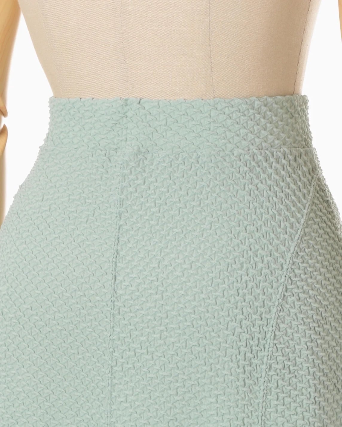 リサイクルされたブライトポリエステル糸を使用した天竺ジャカードペンシルスカート。