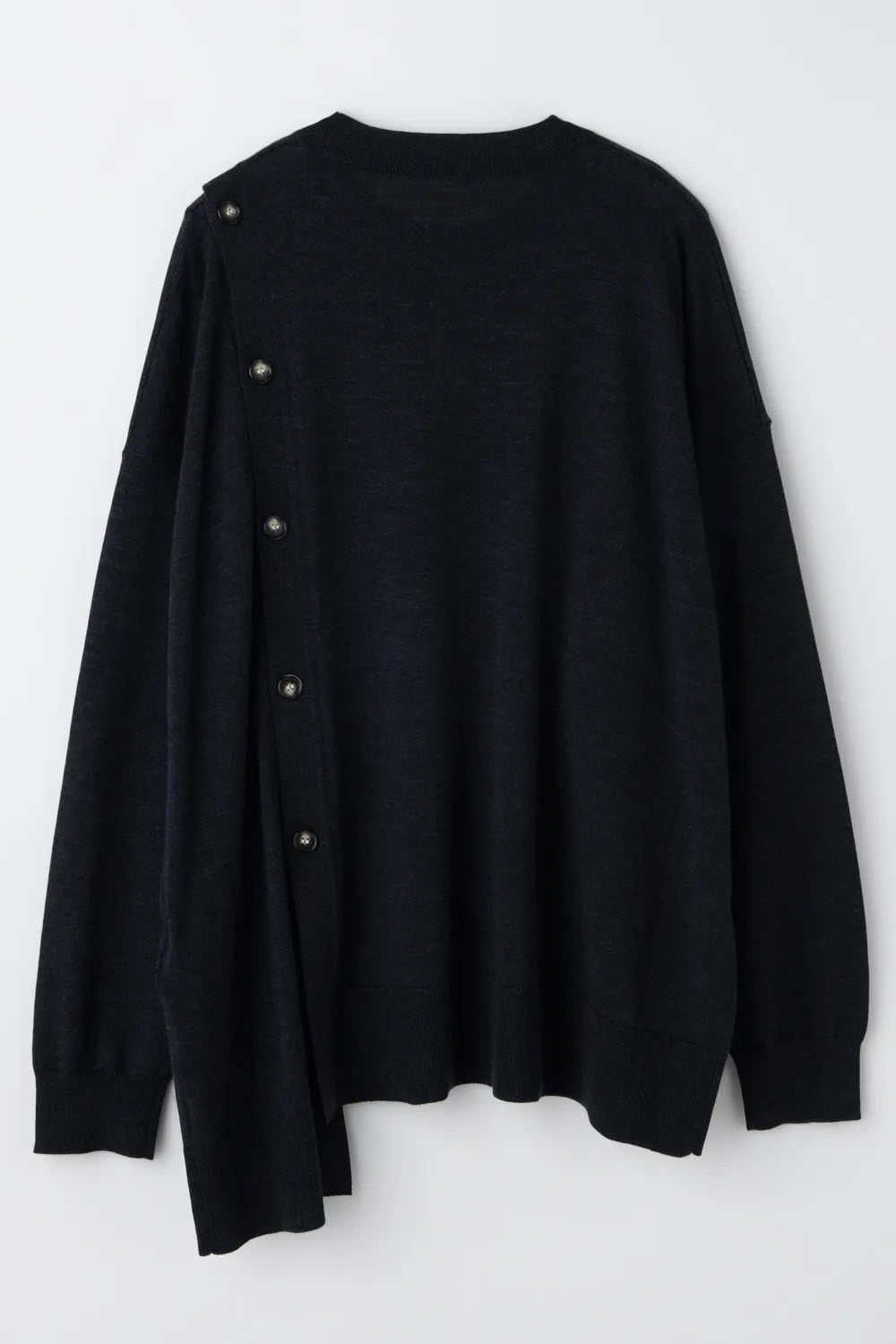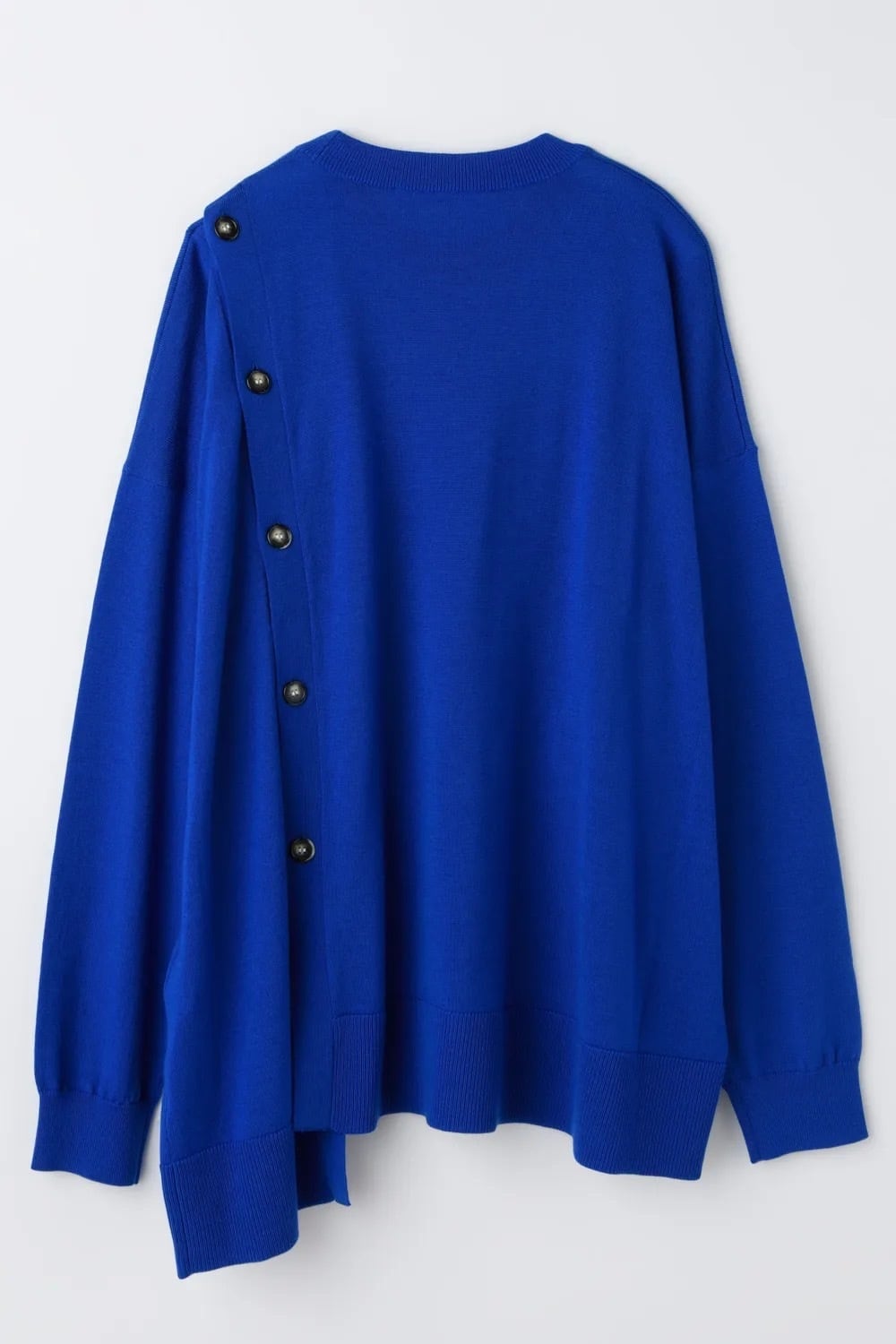 BOXシルエットのプルオーバーとして、左肩からのボタンを外したりボタンの止める位置を変えたりと様々な着方を楽しめるプルオーバー。