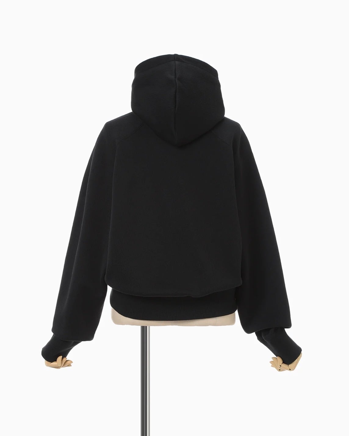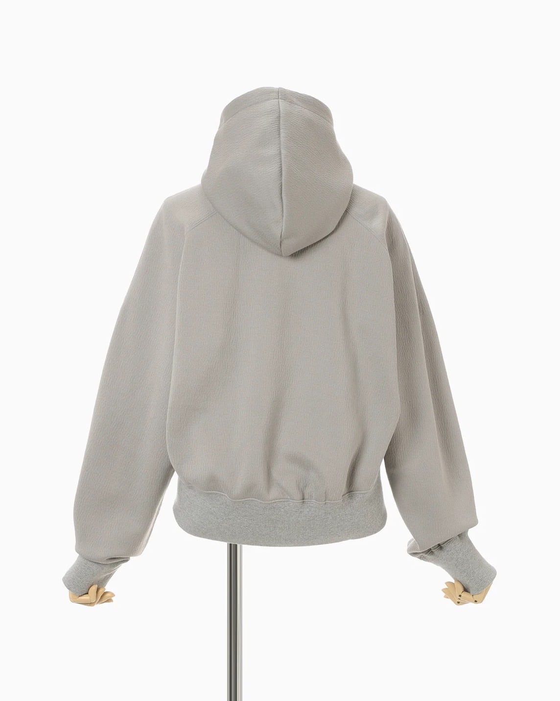 生地の表面に独特な凹凸のある段ボール生地を使用したフーディー。