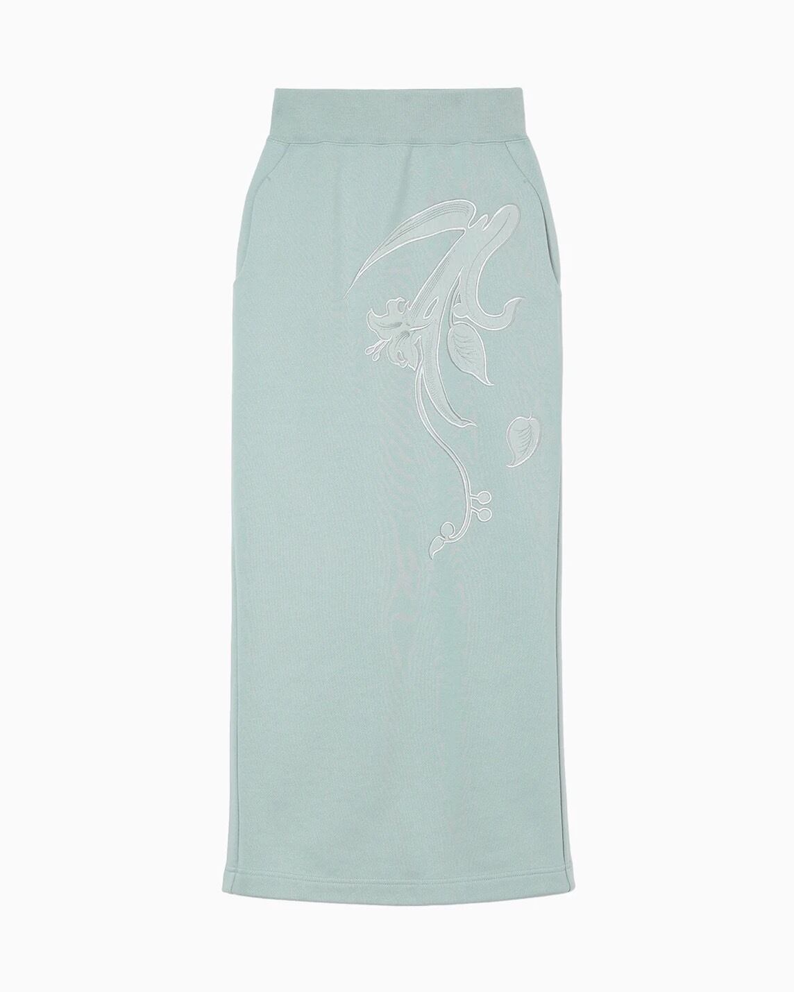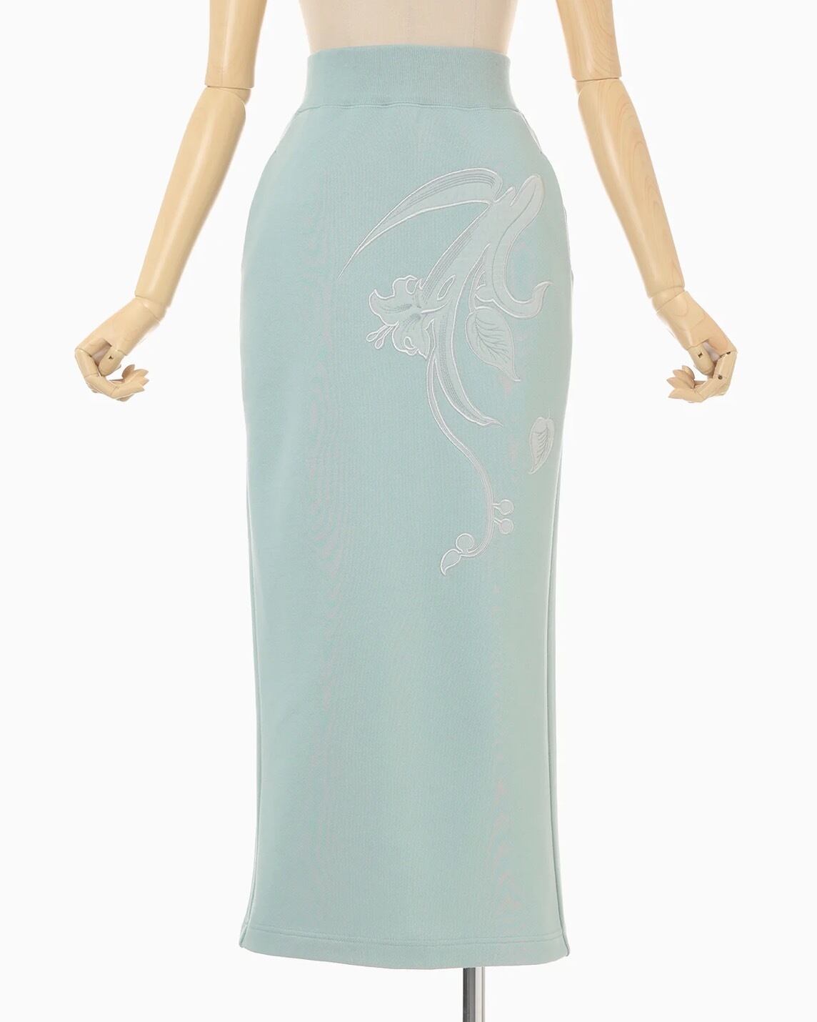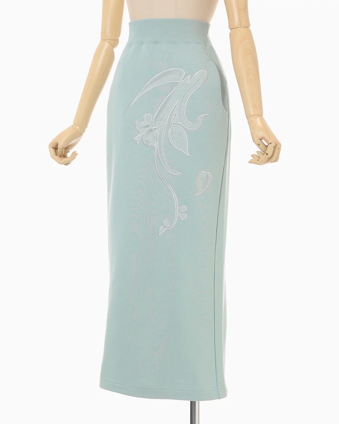 可憐な草花の刺繍を大胆に施したジャージースカート。