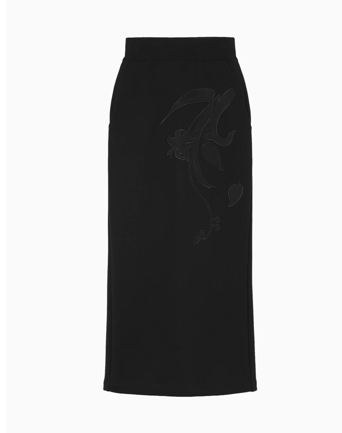 可憐な草花の刺繍を大胆に施したジャージースカート。