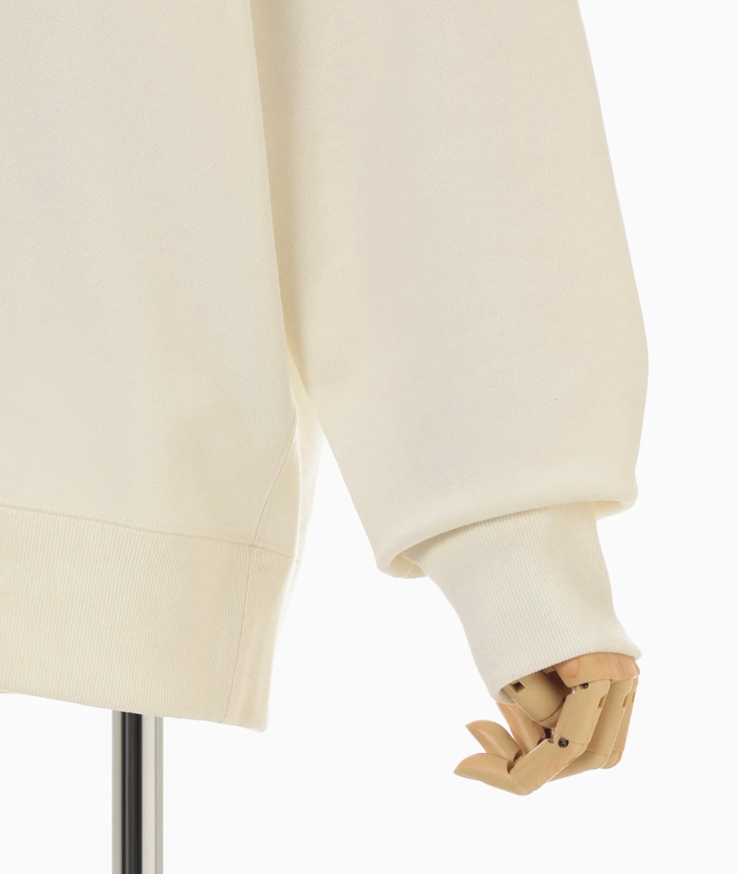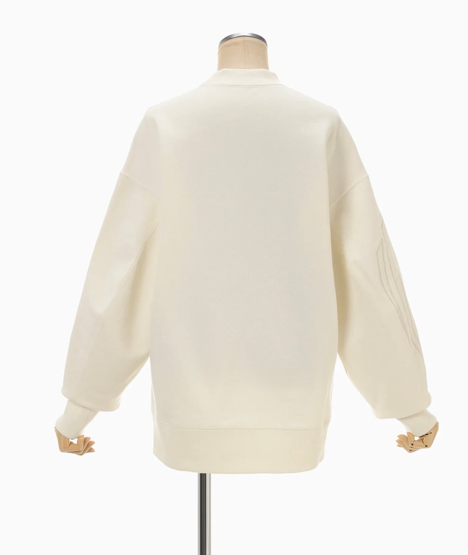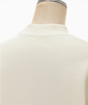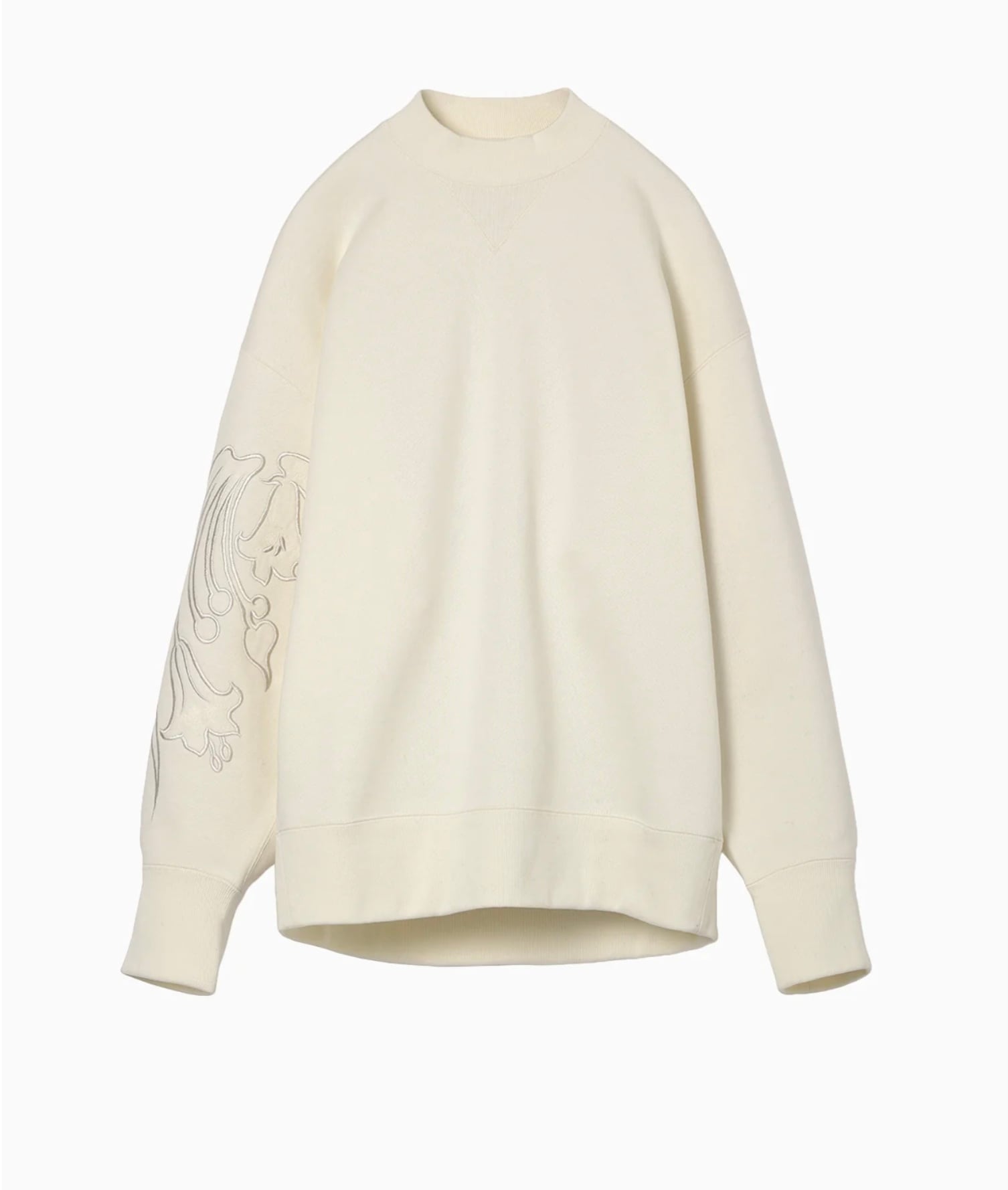 肉厚なジャージー素材はハリ感のあるしっかりとした生地にシルケット加工を施すことで光沢感のある上品な仕上がりに。花柄にカットしたオーガンジーの縁を刺繍で縫い留めたアップリケ刺繍が、カジュアルさの中に繊細な気品を付与し、前後差のあるオーバーサイズのシルエットが様々なボトムと高相性。リラクシングかつ汎用性にも優れる。同素材のスカートとセットアップ着用が可能。