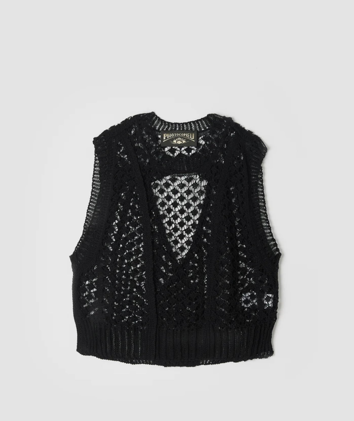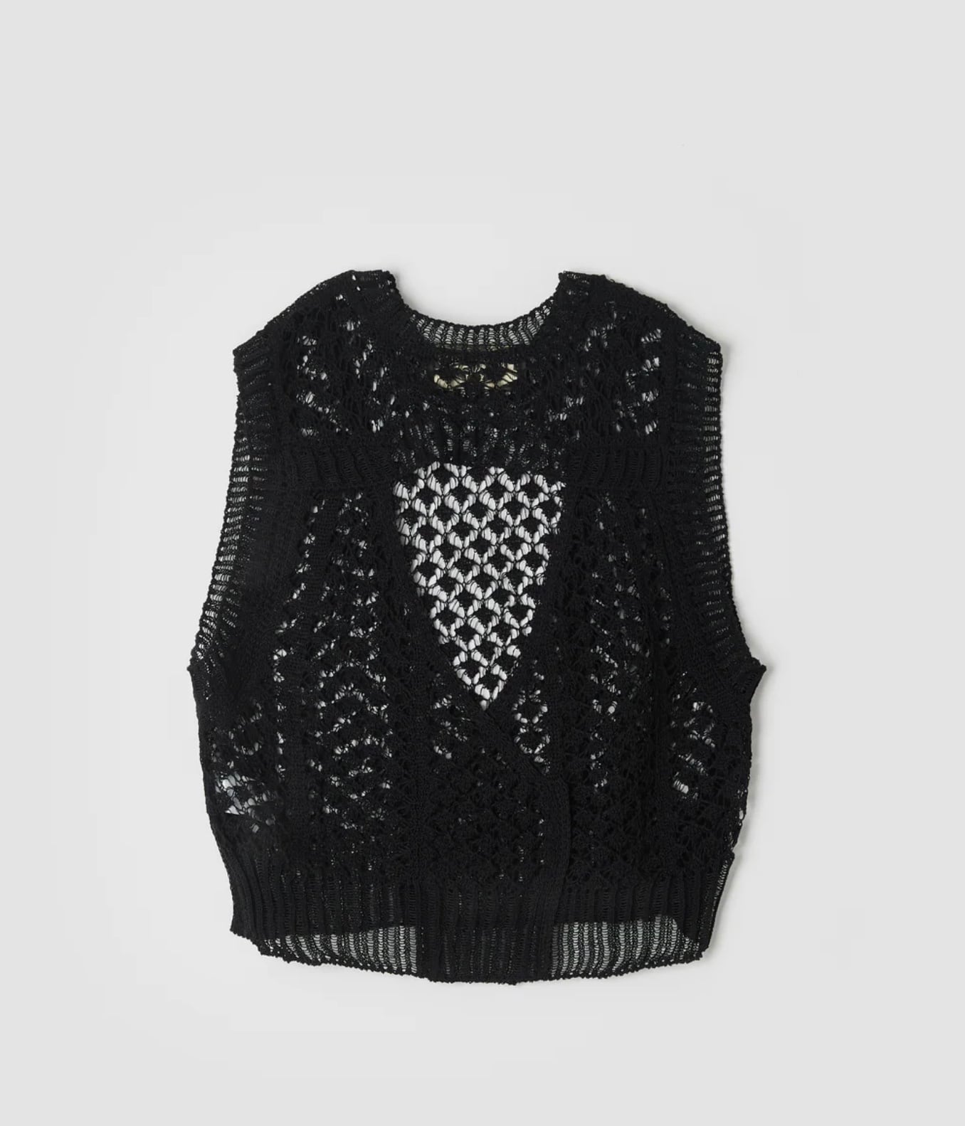 コットンギマ糸を使用した、涼しげな印象の透かし柄のベスト。