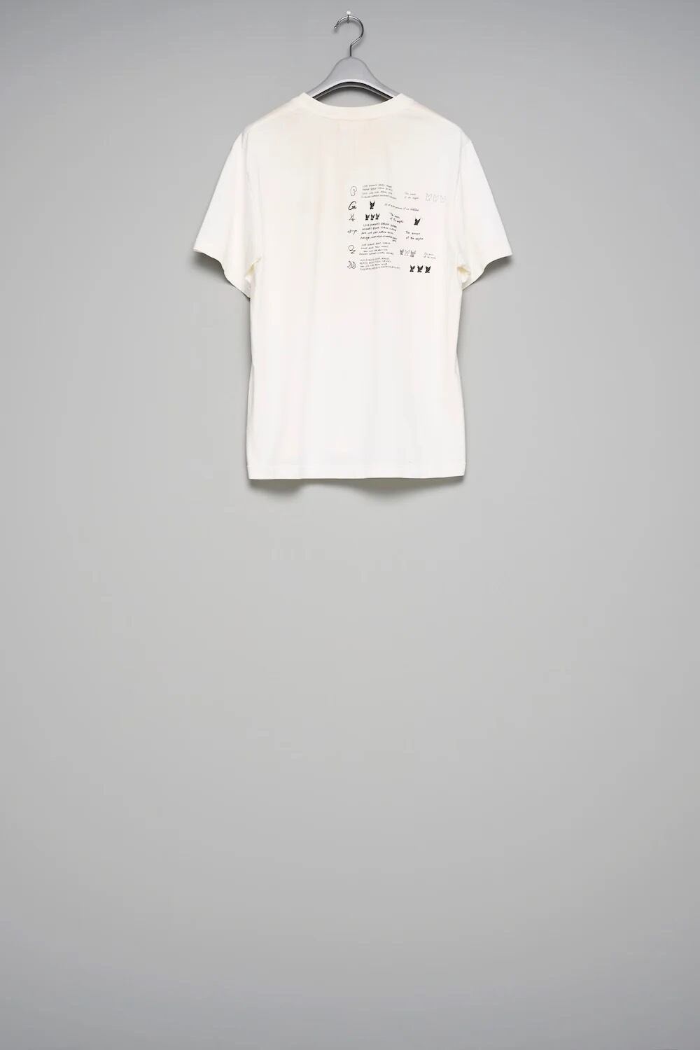 曖昧なストライプの輪郭と、左胸に宿る欠けた天使が日常に深い物語を鮮明に刻み込む。