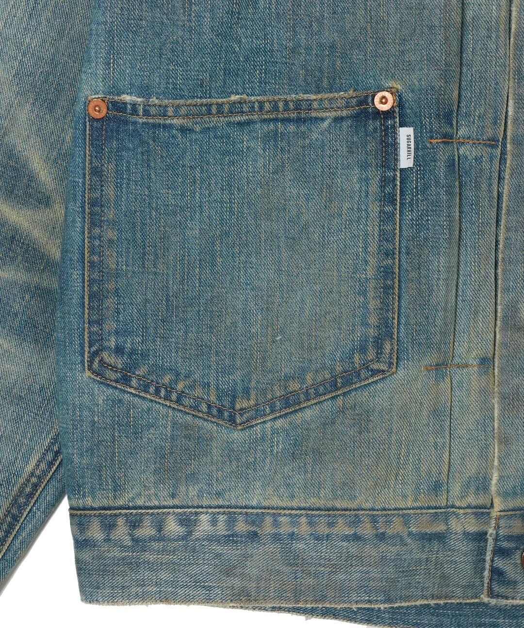 全体にフェード加工を施し、ムラのある色落ちと随所に現れるアタリによりデニム特有の表情を引き出しています。
