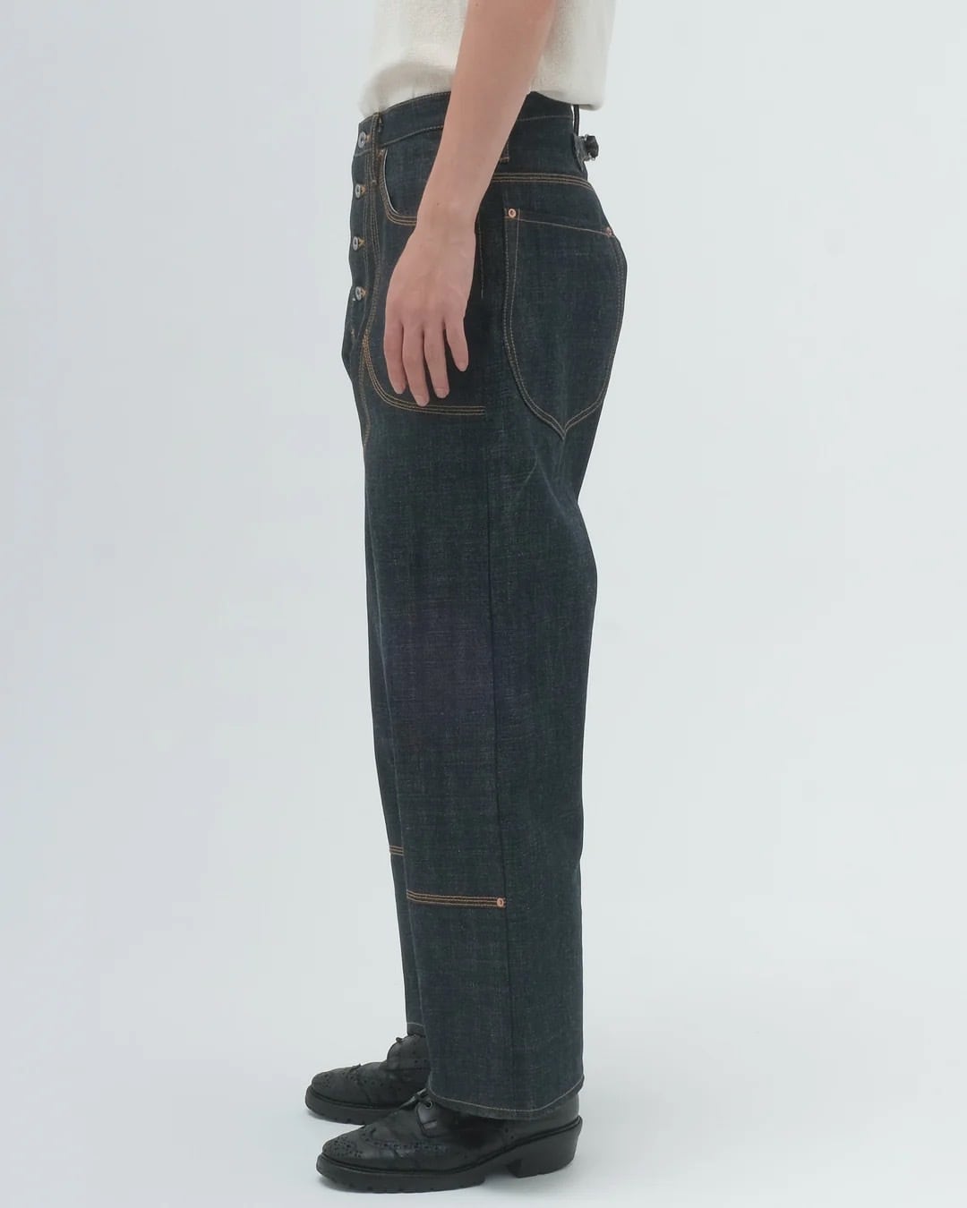 ワークウェアのディティールを踏襲しながら、現代的に昇華されたダブルニーパンツ。