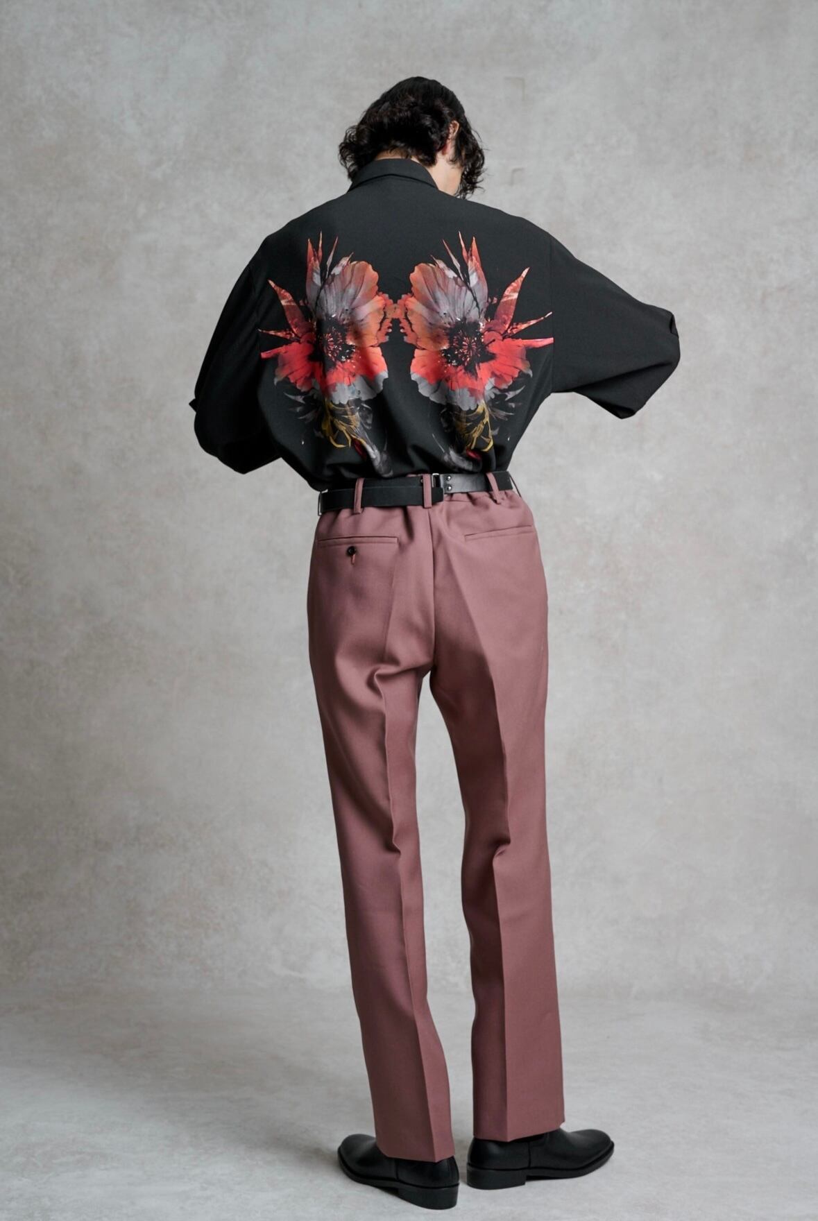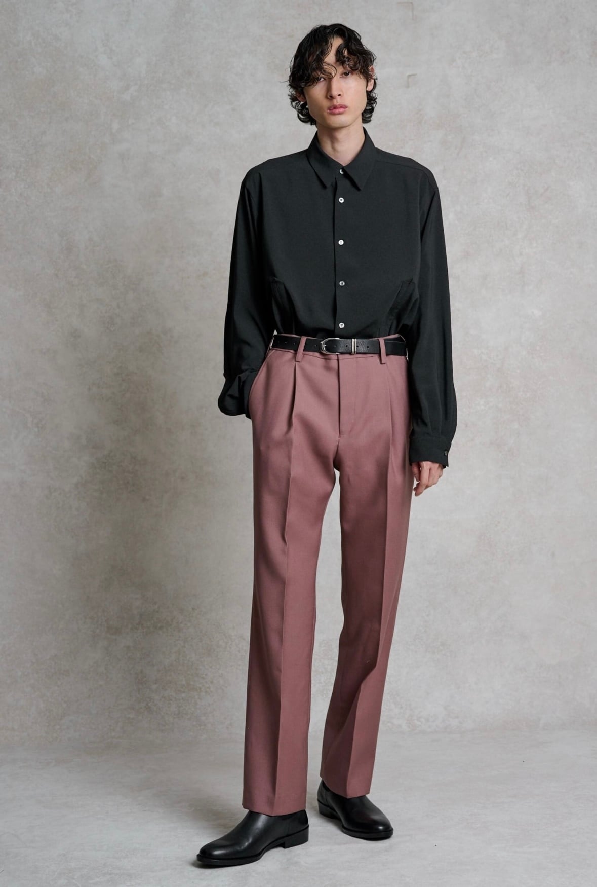 センタークリース入りのストレートシルエットのパンツです。ウエスト背面はゴム仕様になっており、腰回りはゆったりとしたリラックス感あるデザインです。ゆったりとしたUJOHのシルエットにメリハリを生むアイテムです。